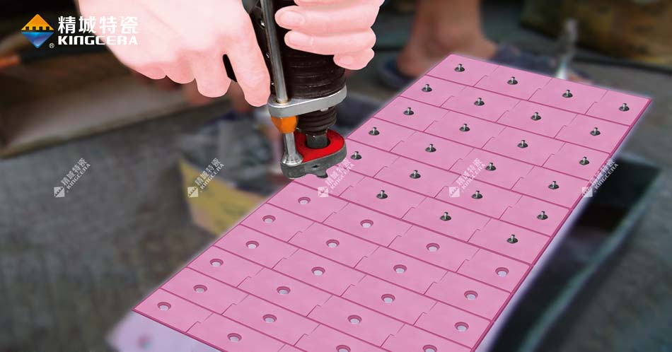 普通的陶瓷粘膠耐溫范圍在150℃以下,而精城研發(fā)的無機(jī)粘膠可以將這個(gè)耐溫范圍提升到350℃。如果溫度超過350℃且不高于500℃,我們可以用螺柱焊接安裝陶瓷。超過500℃則建議選用燕尾卡槽安裝陶瓷。